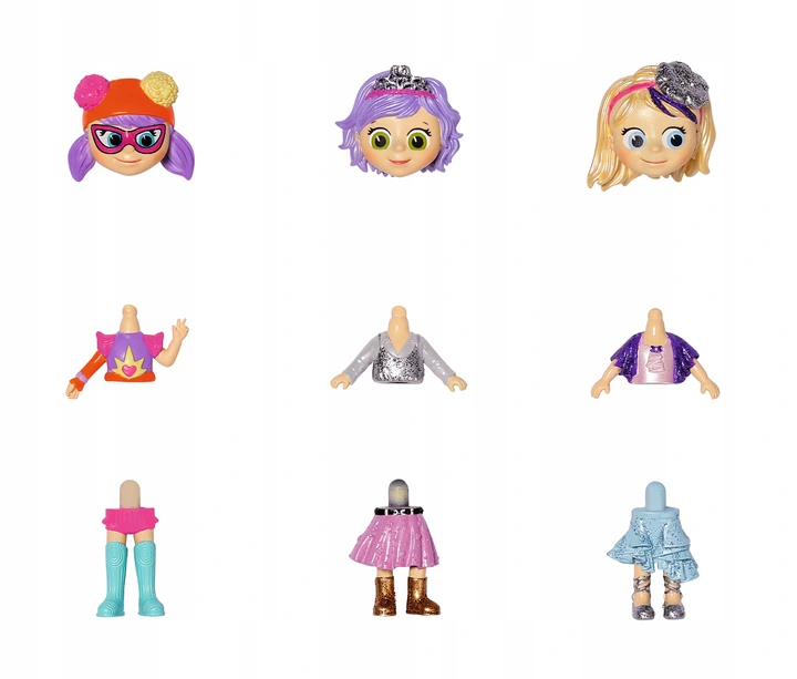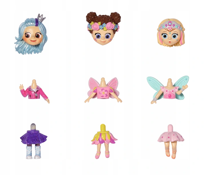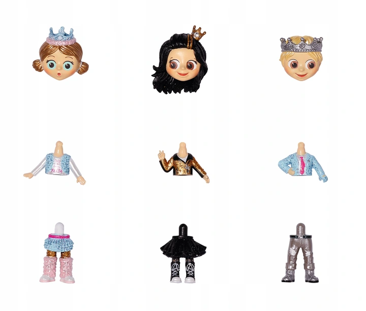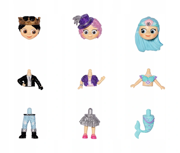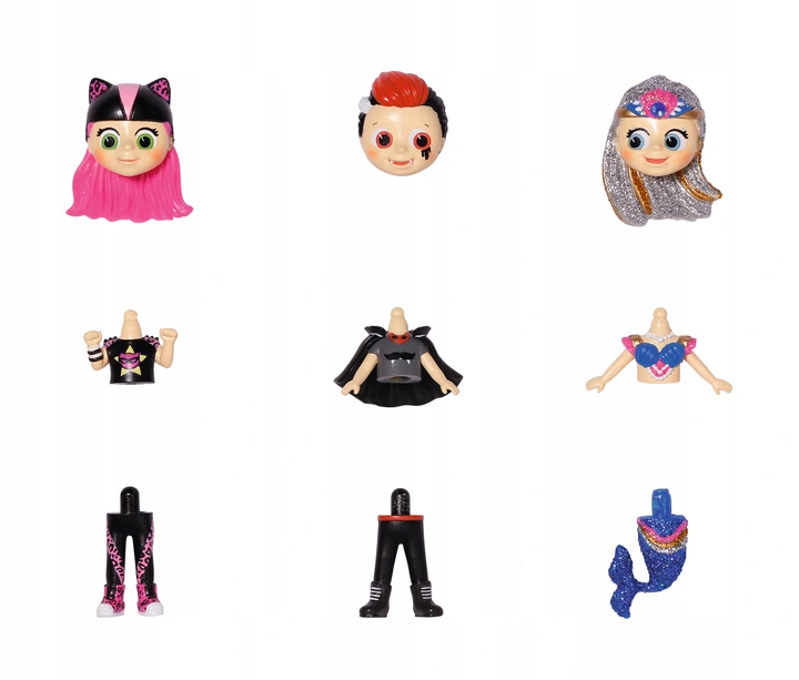 - 1 x laleczka niespodzianka (3 części: głowa, tułów, nogi)