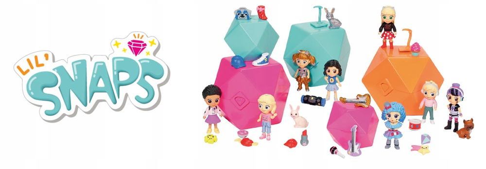 LIL'SNAPS to zestawy niespodzianek, które można łączyć w lalki lub biżuterię. Wymieniaj głowę lalki, tułów i nogi, aby stworzyć zupełnie nową postać. LIL'SNAPS daje unikalną możliwość umieszczenia laleczek na bransoletce, naszyjniku lub breloczku. W opakowaniu znajduje się ponad 15 elementów m.in.: laleczka, mała zawieszka, łączniki oraz "biżuteria". Możesz odłączyć biżuterię za pomocą prostego systemu zatrzaskowego, a nawet dołączyć zawieszki z innych LIL'SNAPS. Akcesoria są ze sobą kompatybilne. W kolekcji do zebrania ponad 25 laleczek oraz 80 zawieszek. Zbierz je wszystkie!