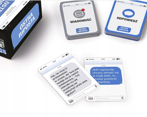 Imprezowa gra dla dorosłych, dzięki której rozkręcisz każdą imprezę! Dobierz najlepszą ripostę na daną wiadomość, a sędzia wskaże zwycięzcę. Ale pamiętaj! Bądź ostry i bezlitosny!