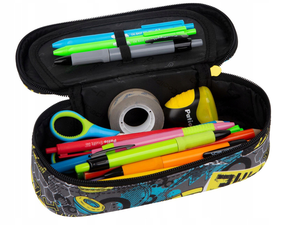 Usztywniany piórnik Campus marki Coolpack. Pojemny, wykonany z trwałego poliestru, świetnie zorganizuje wszystkie przybory piśmiennicze. Piórnik posiada jedną komorę zamykaną na suwak. Wewnątrz znajduje się klapka z gumkami na długopisy, ołówki i kredki.