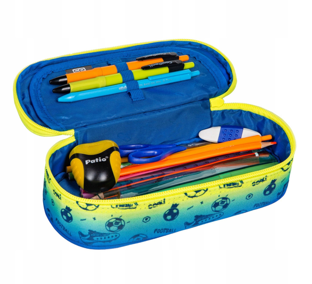 Usztywniany piórnik Campus Gradient marki Coolpack. Pojemny, wykonany z trwałego poliestru, świetnie zorganizuje wszystkie przybory piśmiennicze. Piórnik posiada jedną komorę zamykaną na suwak. Wewnątrz znajduje się klapka z gumkami na długopisy, ołówki i kredki.