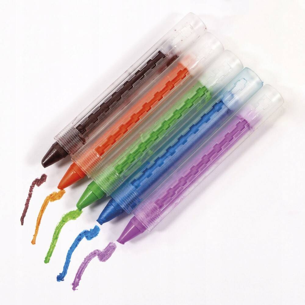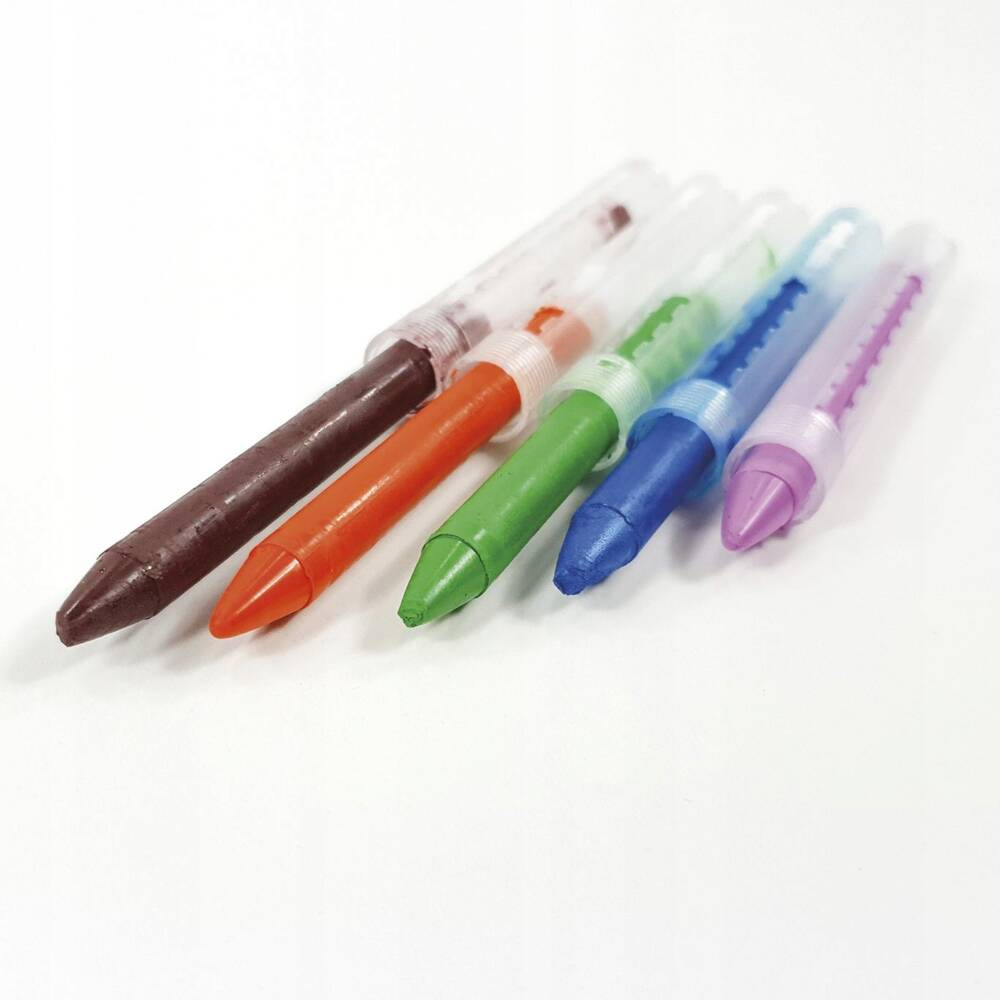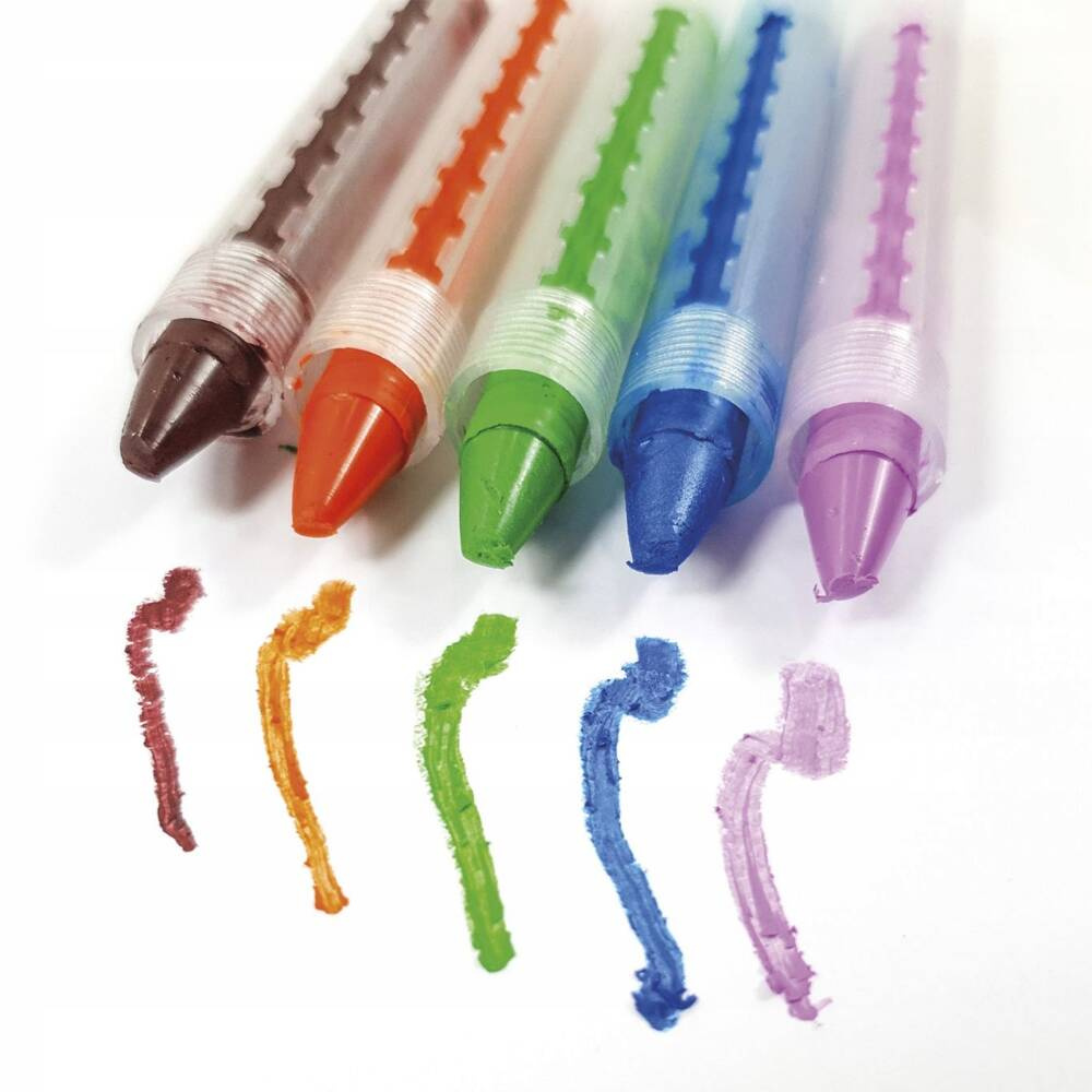 Kredki do twarzy w dwunastu wyrazistych kolorach, które dzięki swojej miękkości doskonale sprawdzają się w precyzyjnym rysowaniu kreatywnych rysunków na skórze. Ich wygodny mechanizm wykręcania dodatkowo uatrakcyjnia produkt i pozwala na wygodne korzystanie. Kredki są bezpieczne w użytkowaniu, co potwierdzają przeprowadzone testy dermatologiczne. Posiadają ergonomiczny kształt, dzięki czemu idealnie pasują do rączki każdego dziecka. Kredki nie zasychają na skórze, dzięki czemu można łatwo je usunąć przy użyciu wody i mydła, a ewentualne pozostałości przy pomocy płynu do demakijażu.