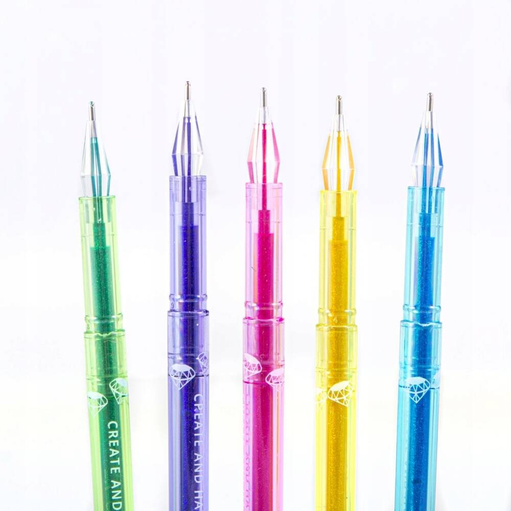 Wysokiej jakości długopisy przeznaczone są do kolorowania, rysowania i pisania na papierze. W zestawie znajduje się 6 brokatowych kolorów: fioletowy, różowy, żółty, zielony, niebieski i czarny.