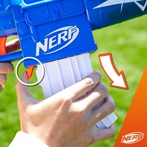 Elektryczny blaster może wystrzeliwać aż 10 strzałek jednocześnie. Wystarczy załadować 10 strzałek do magazynka i nacisnąć przycisk przyspieszenia, aby aktywować silnik i szybko wystrzelić strzałki.