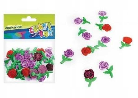 Materiałowe, kolorowe różyczki od Craft with Fun. Zestaw zawiera 30 szt. ozdób. Idealne do zdobienia kartek okolicznościowych, zaproszeń czy pamiętników. Świetnie sprawdzą się również jako element dekoracyjny do pokoju dziecka! Żywe kolory dają praktycznie nieskończoną ilość możliwości ich stosowania. Aplikacje posiadają płaską powierzchnię dzięki czemu można je przyklejać za pomocą kleju.