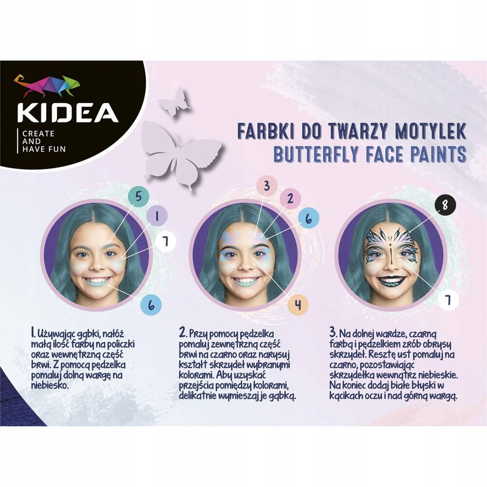 Przeobraź się w przepięknego motyla z farbkami do twarzy Motylek od KIDEA. Stwórz spektakularny makijaż razem z KIDEA, od którego wszyscy nie będą mogli oderwać wzroku!