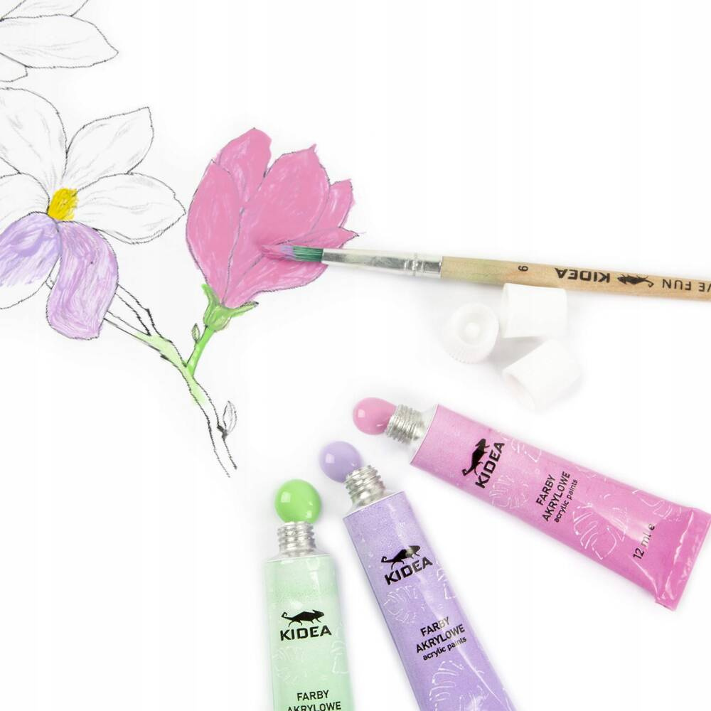 Farby akrylowe w 12 pastelowych odcieniach od KIDEA przypadną do gustu każdemu małemu artyście.