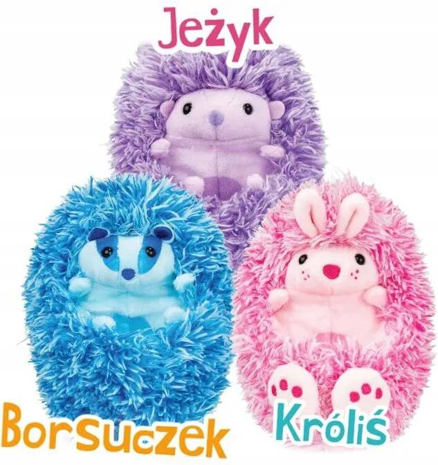 W asortymencie: fioletowy jeżyk, różowy królik, niebieski borsuk