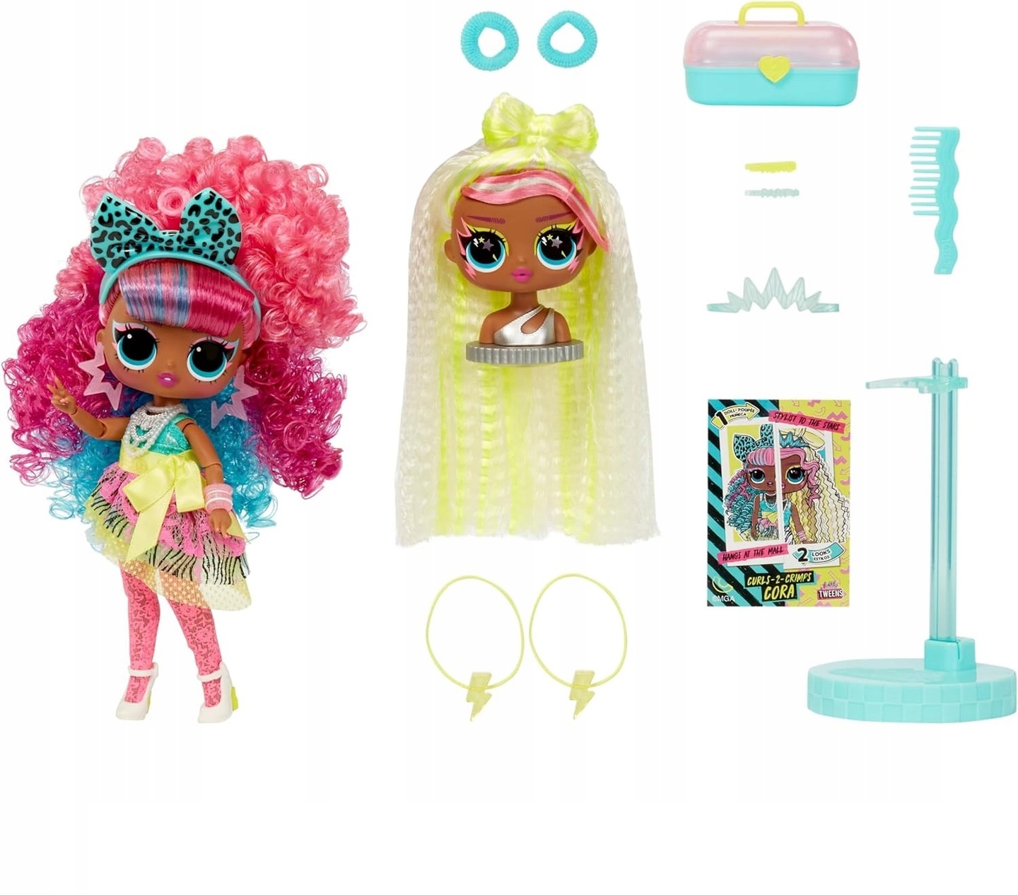 Przedstawiamy zupełnie nową lalkę LOL Surprise Tweens Surprise Swap Fashion Doll Curls-2-Crimps Cora, która ma 2 unikalne wyglądy i funkcję wymiany główki, co zapewnia najwyższą personalizację i zabawę włosami!
