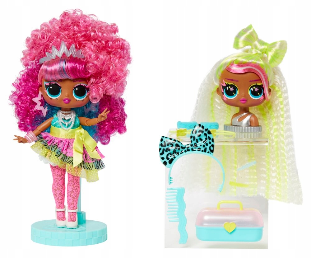 Zmień wygląd Cory w jednej chwili, zamieniając jej różowo-turkusową fryzurę na żółtą, platynową blond i różową główkę stylizującą, którą można łatwo przymocować do ciała lalki. Następnie szybko zmień jej strój i zmień dodatki, w tym nakrycie głowy, dodatki do włosów i nie tylko! Gdy skończysz stylizować swoją lalkę, powtarzaj funkcję zamiany oraz zmiany ubioru i akcesoriów, aby stworzyć nieskończoną liczbę kombinacji i dopasowań!