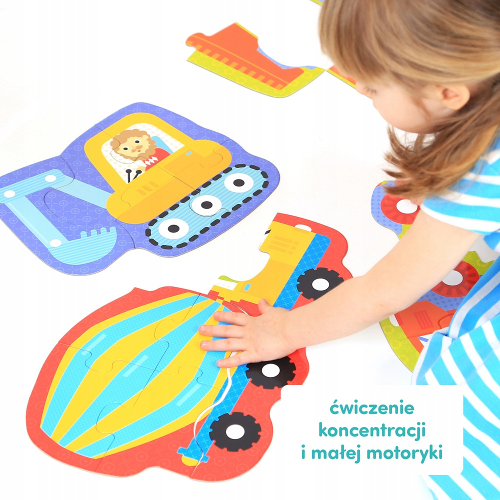 Brum, brum! Najmłodsi wielbiciele potężnych maszyn, to układanki dla was. Zacznijcie przygodę z pierwszymi wieloelementowymi puzzlami!
