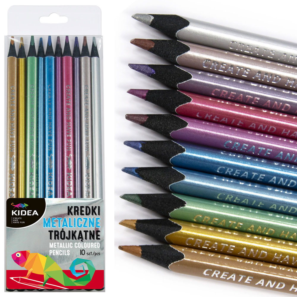 - Kidea Kredki ołówkowe trójkątne metaliczne 10 kolorów