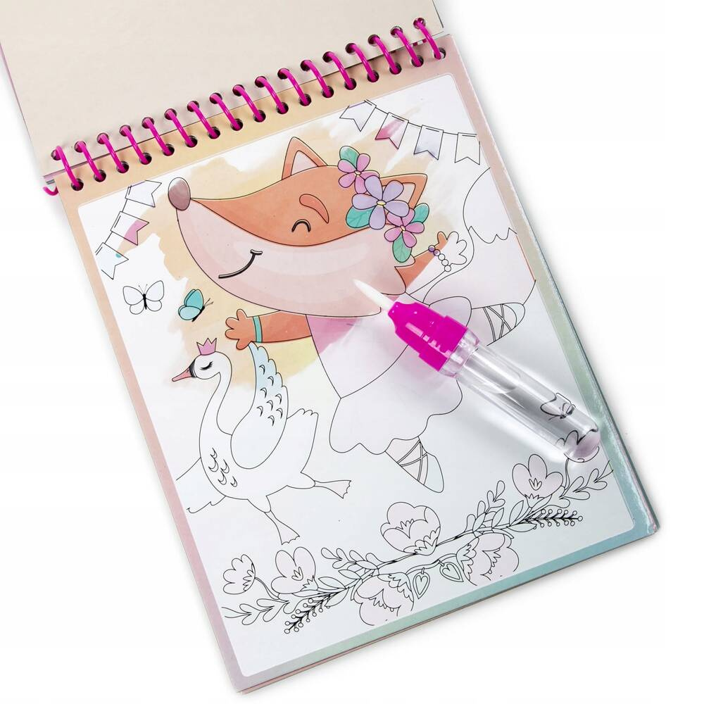 Magiczna wielorazowa kolorowanka wodna to super pomysł na prezent! W zestawie znajduje się aż 6 kolorowanek z baletnicami oraz pisak wodny.