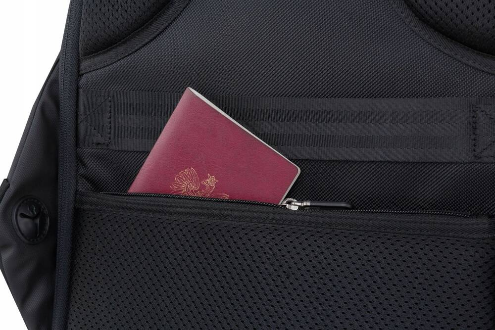 Dodatkowe zabezpieczenie w postaci zamków błyskawicznych sprawi, że wszystkie rzeczy będę na swoim miejscu nawet w najbardziej ekstremalnych warunkach. Dwie kieszenie na szelkach pozwolą ci mieć zawsze pod ręką najważniejsze dla ciebie drobiazgi, takie jak klucze czy słuchawki. Natomiast antywłamaniowa kieszeń na plecach zabezpieczy twoje dokumenty i zwiększy komfort podróżowania. To plecak idealny nie tylko do pracy, ale również do podróży dzięki komfortowemu uchwytowi na walizkę oraz wyściełanym, wyprofilowanym plecom.