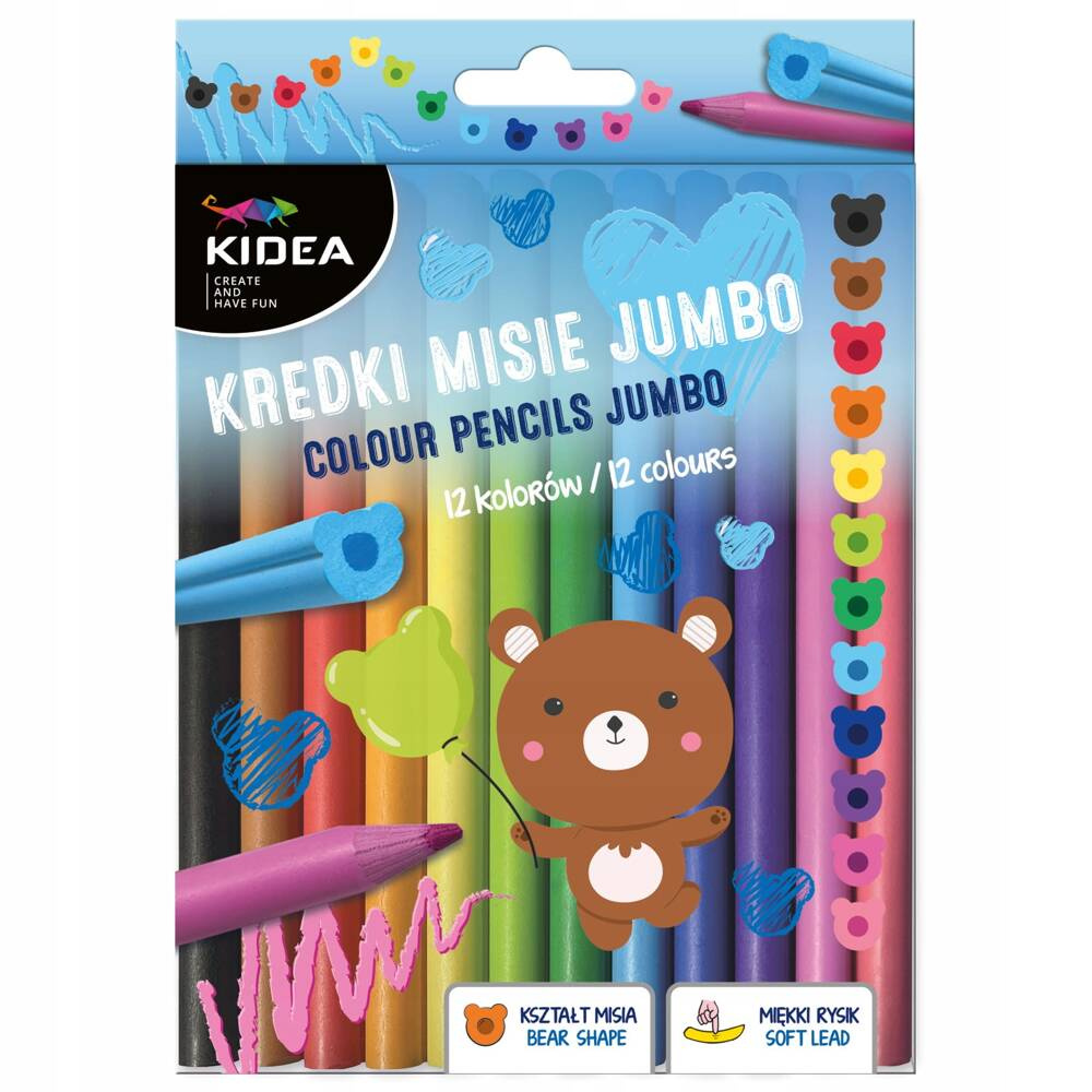 - Kredki Ołówkowe Misie Jumbo 12 kolorów Kidea