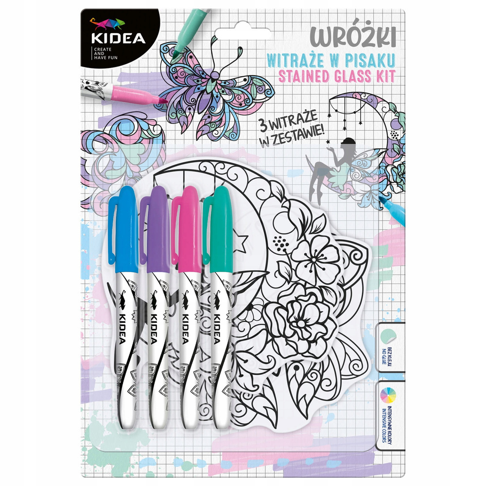 Witraże na okno zestaw kreatywny 3 szablony 4 flamastry Wróżki Kidea