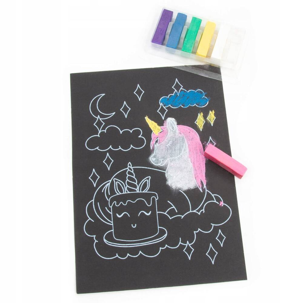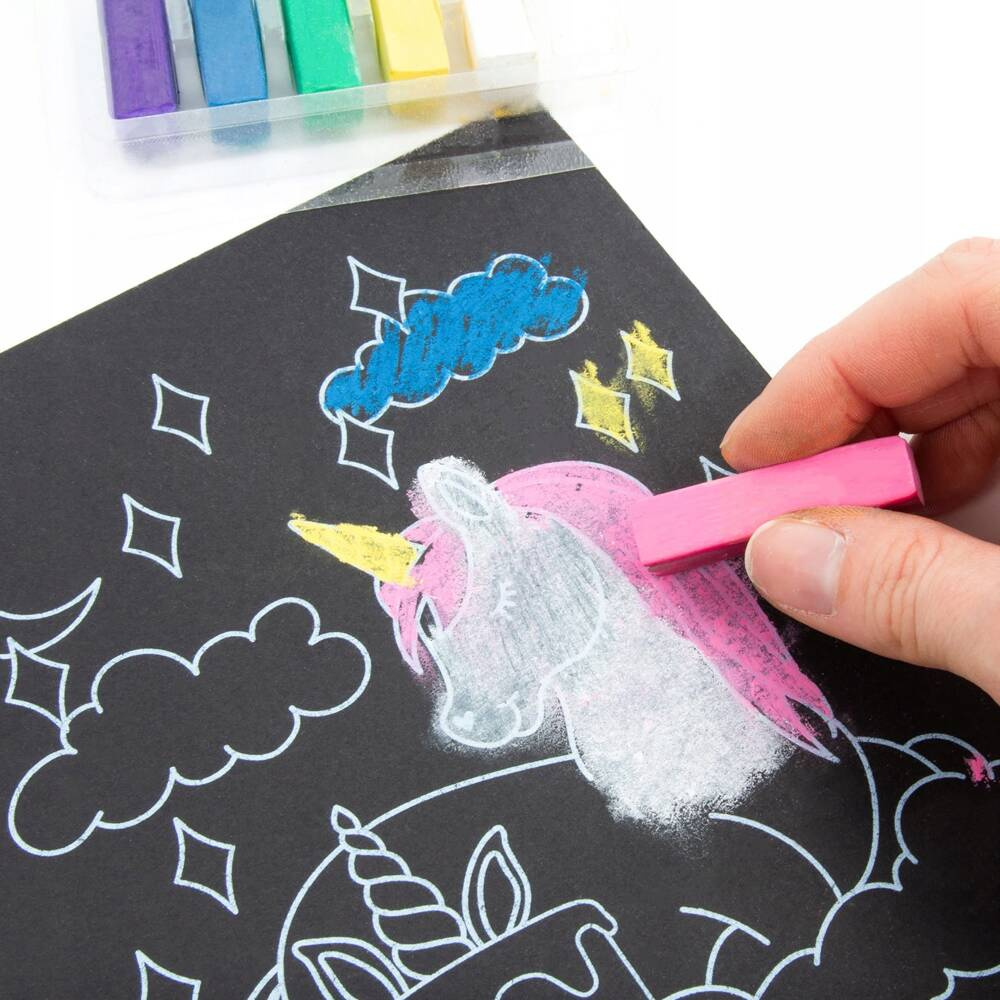 - Zestaw Rysunkowy z pastelami 6 pasteli 6 arkuszy Jednorożec Kidea