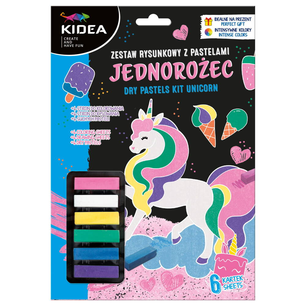 Zestaw Rysunkowy z pastelami 6 pasteli 6 arkuszy Jednorożec Kidea