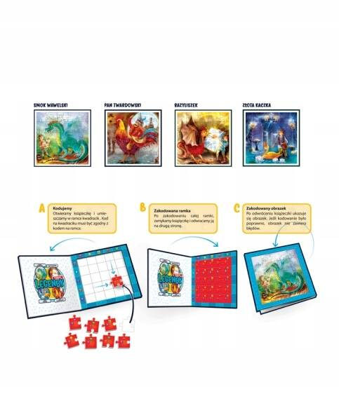 Kodowanka zawiera obrazki przedstawiające scenki z czterech legend: Bazyliszek, Złota Kaczka, Pan Twardowski, Smok Wawelski. Obrazki zostały podzielone na 25 kwadratowych elementów.