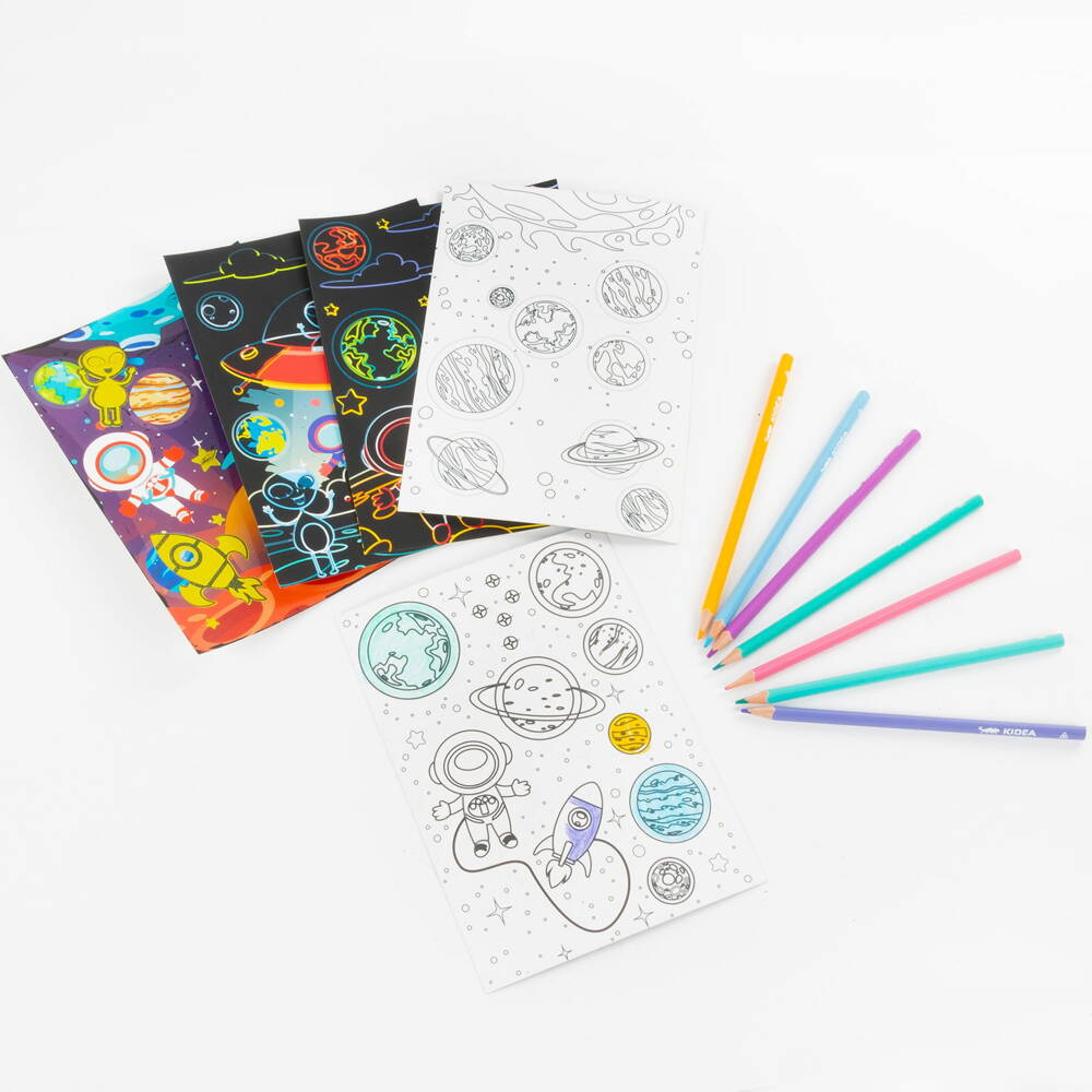 - Kidea Zestaw Kreatywny Wydrapywanka Kolorowanka świecąca w ciemności Kosmos