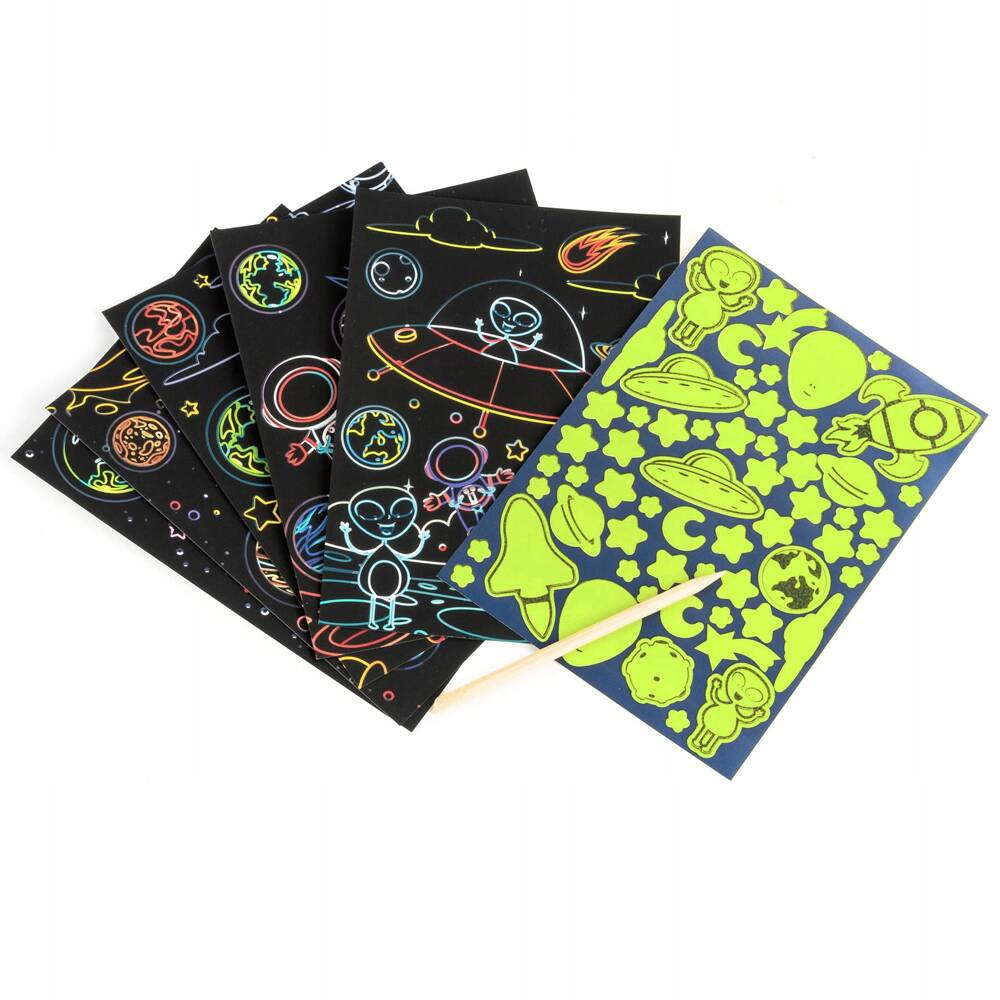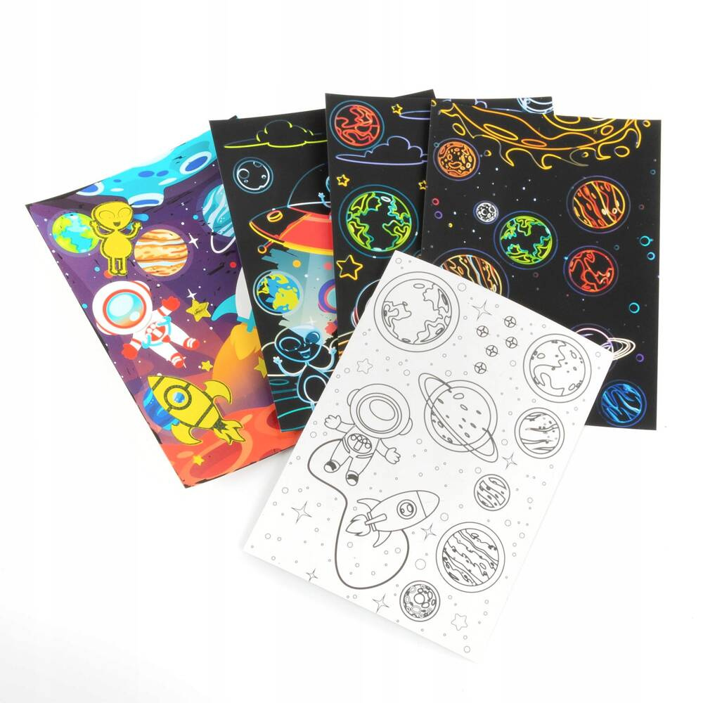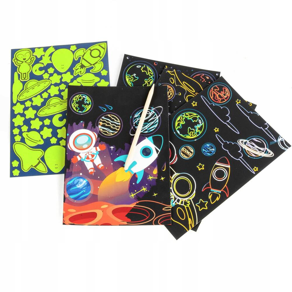 Kidea Zestaw Kreatywny Wydrapywanka Kolorowanka świecąca w ciemności Kosmos