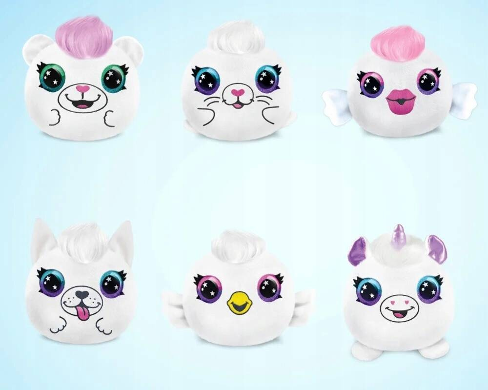 W asortymencie 6 pluszaczków: jednorożec, ptaszek, rybka, piesek, małpka, foczka.