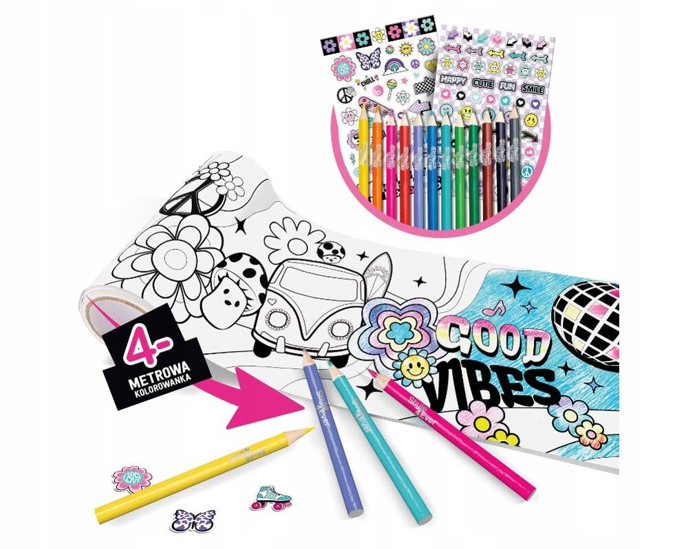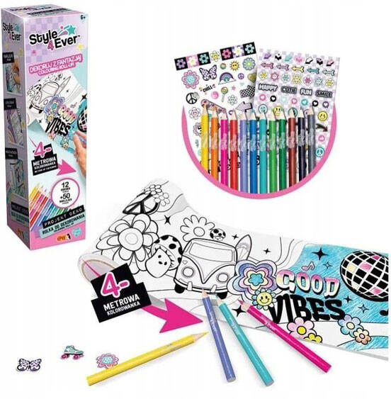 4-metrowa rolka do dekorowania z 3 motywami daje możliwość wyklejania, kolorowania oraz personalizowania swoich projektów.