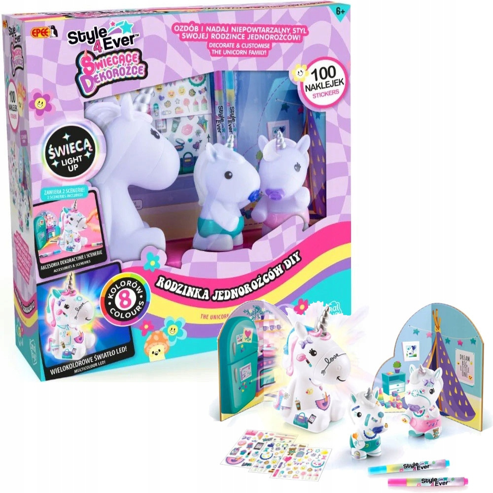 - Świecące Dekorożce Rodzinka Jednorożców do dekoracji świeci 8 kolorów EPEE