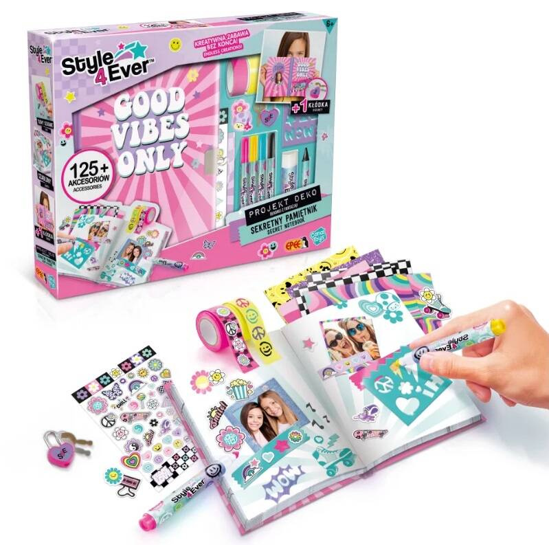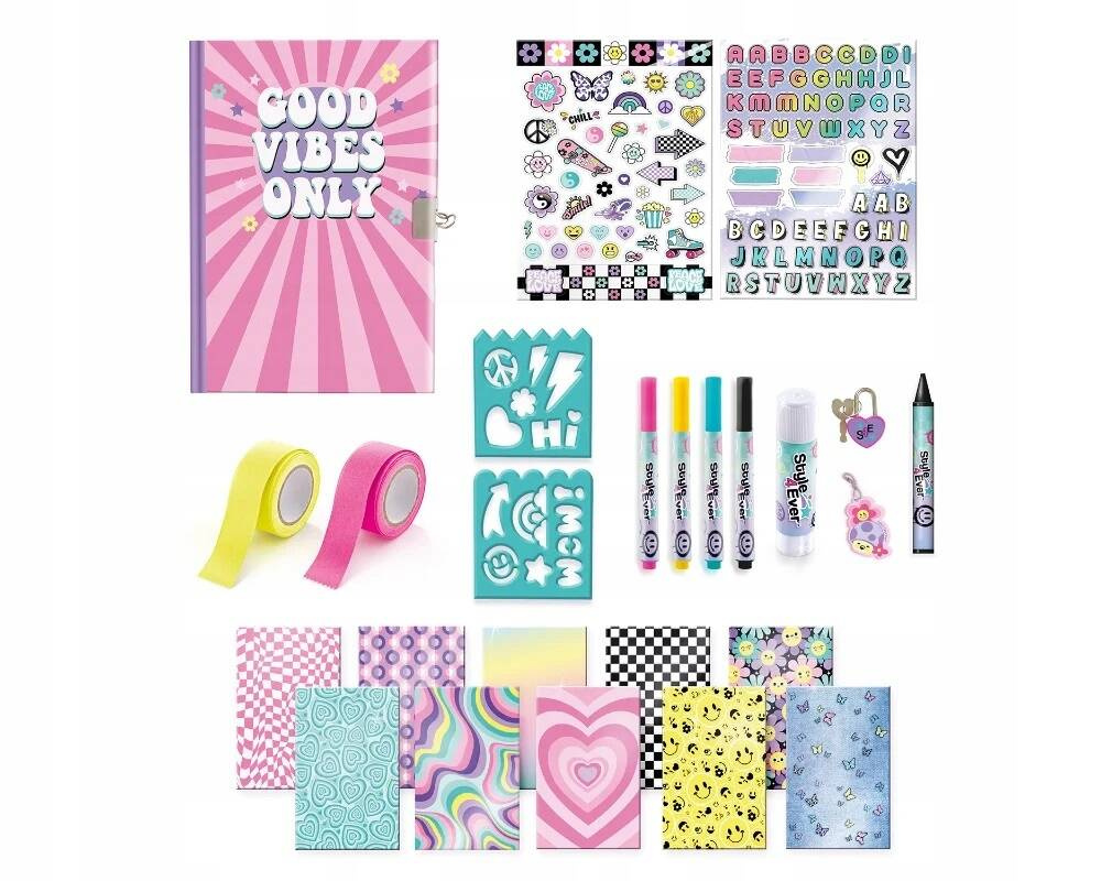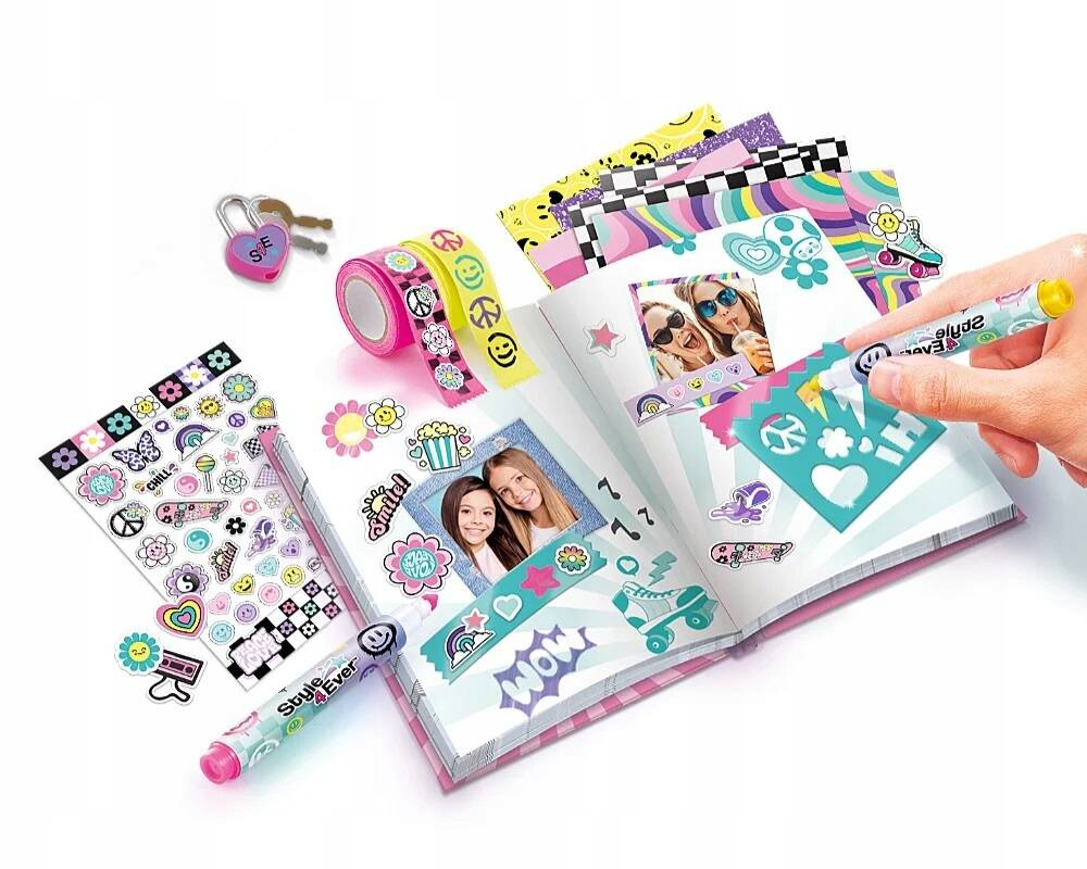 Zestaw zawiera wszystko, czego potrzeba, aby spersonalizować pamiętnik według własnego stylu. Dzięki dołączonym akcesoriom możesz kolorować, wyklejać i ozdabiać, tworząc niepowtarzalne wzory. Gotowy projekt stanie się wyjątkowym miejscem na zapiski, a dzięki zamknięciu na kluczyk sekrety pozostaną bezpieczne!