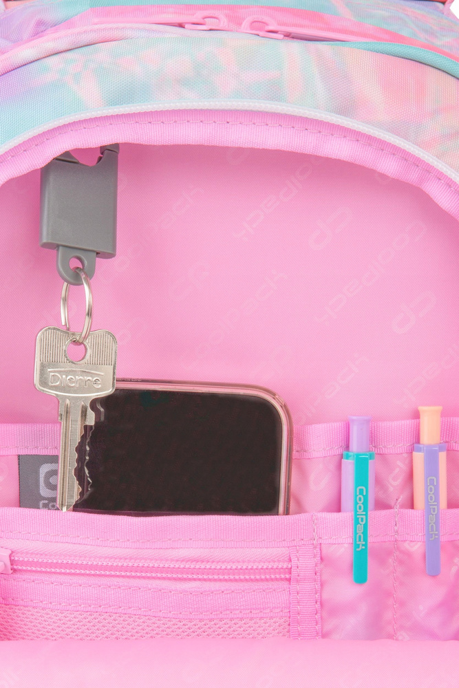 - wewnętrzna kieszeń z organizerem - przegródka z siatki zapinana na suwak, miejsce na przybory do pisania oraz dodatkowa kieszonka;