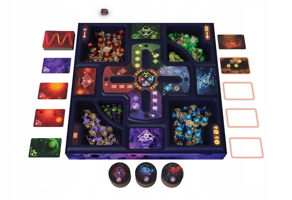 Narodziny kosmosu to strategiczna planszówka o prawdziwie kosmicznej skali. Podczas rozgrywek wcielamy się w kreatorów światów, którzy tworzą własne galaktyki. Każde z nas będzie starało się pozyskać zasoby niezbędne do zrealizowania swojej wizji pozaziemskiego dzieła. Mądre planowanie kolejnych ruchów i sprytne zarządzanie zasobami pozwoli nam osiągnąć kosmiczną perfekcję, zdobyć jak najwięcej punktów i pozostawić trwały ślad we wszechświecie.