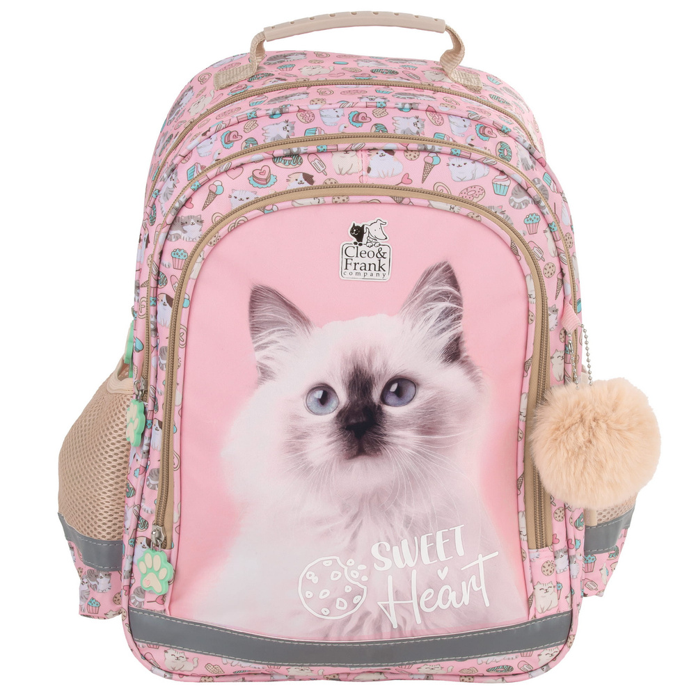 - Plecak szkolny Cleo i Frank dla dziewczynki Kotek klasa 1-3 różowy beżowy