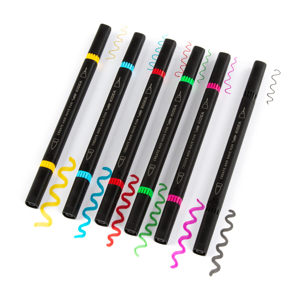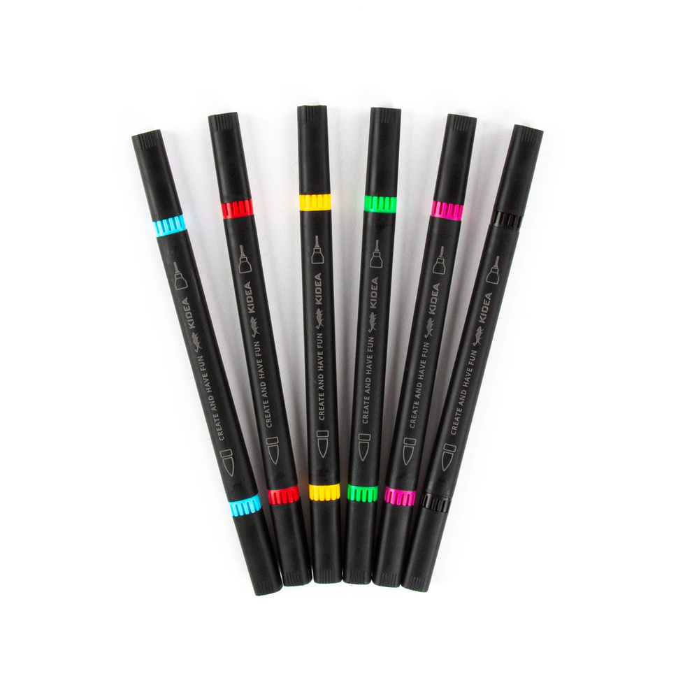 Markery Dwustronne Brush Pen 6 Kolorów Cienkopis Pędzelkowa Końcówka Kidea