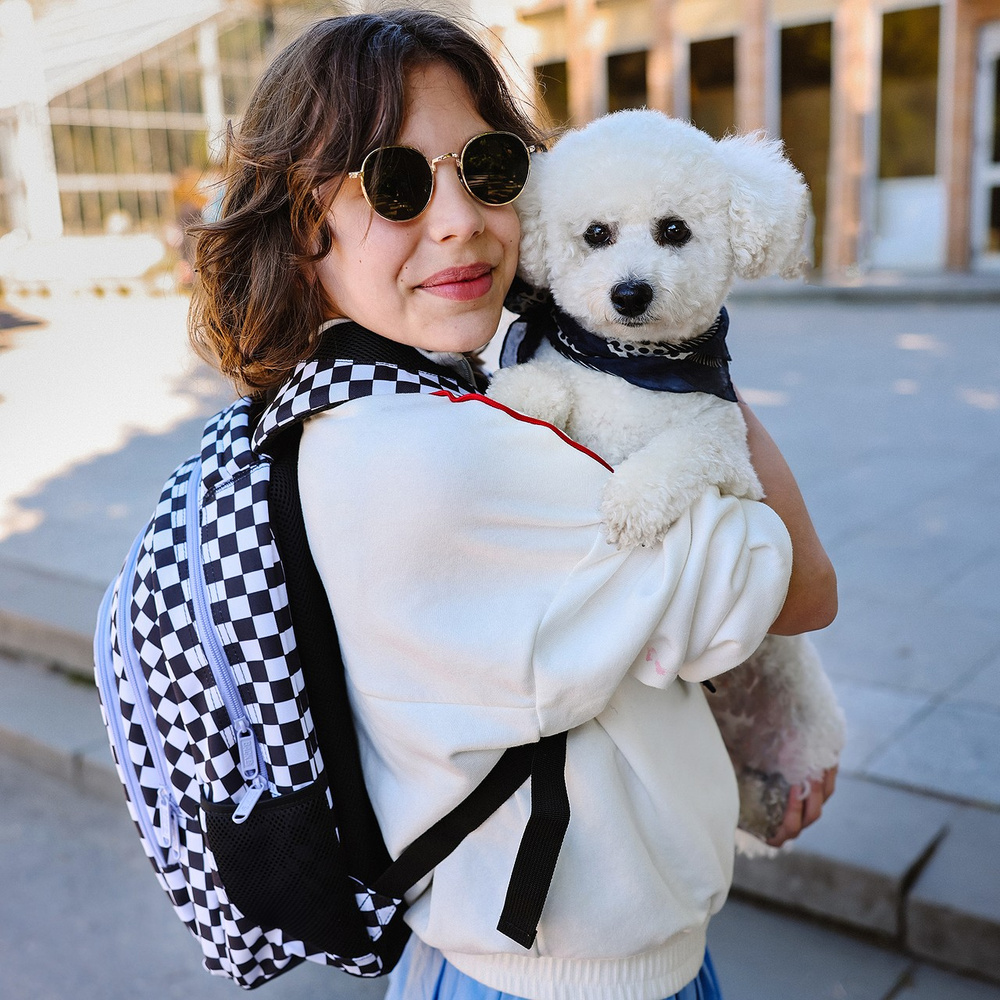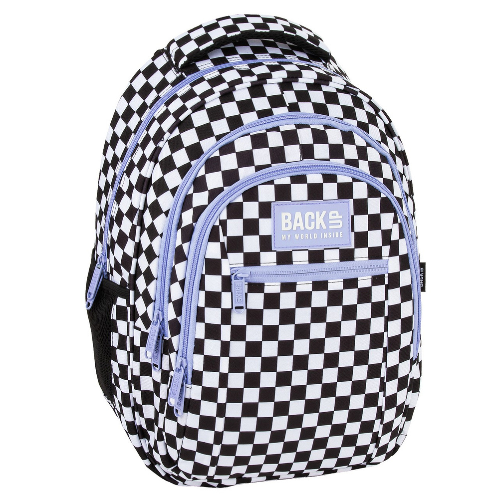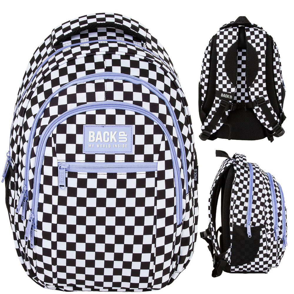 Szukasz plecaka, który łączy modny design z praktycznym wnętrzem? Ten model z kolekcji Szachownica F to strzał w dziesiątkę! Klasyczna czarno-biała kratka zyskała nową energię dzięki odważnym akcentom – fioletowe suwaki i zamki nadają całości wyjątkowego charakteru. To nie tylko plecak – to wyraz stylu, który świetnie dopełni każdą szkolną stylizację.