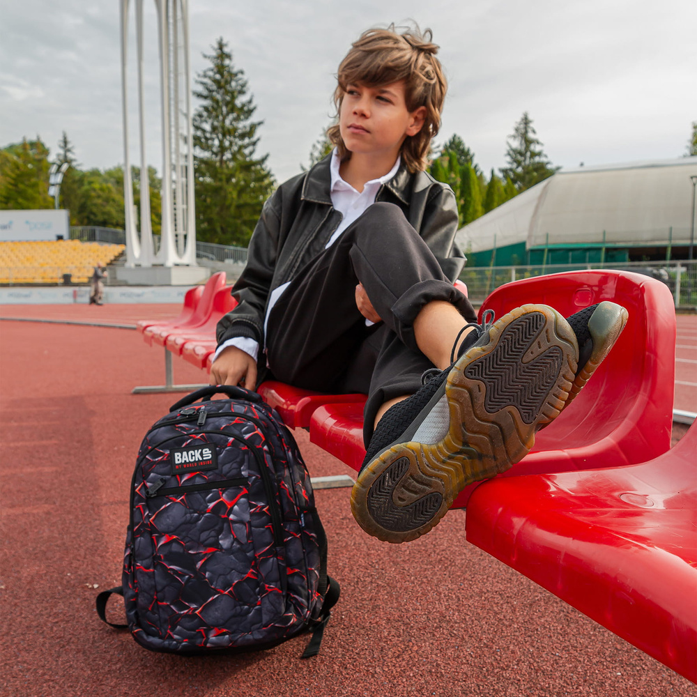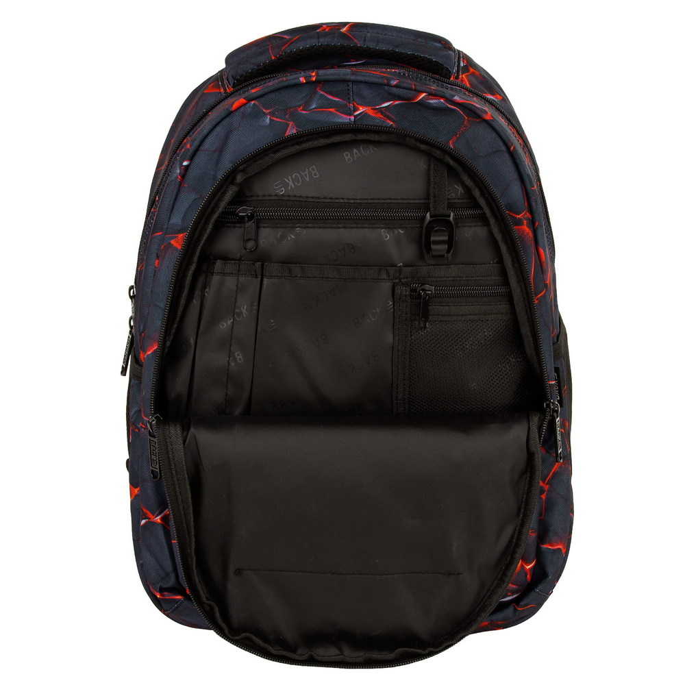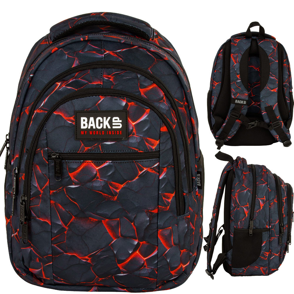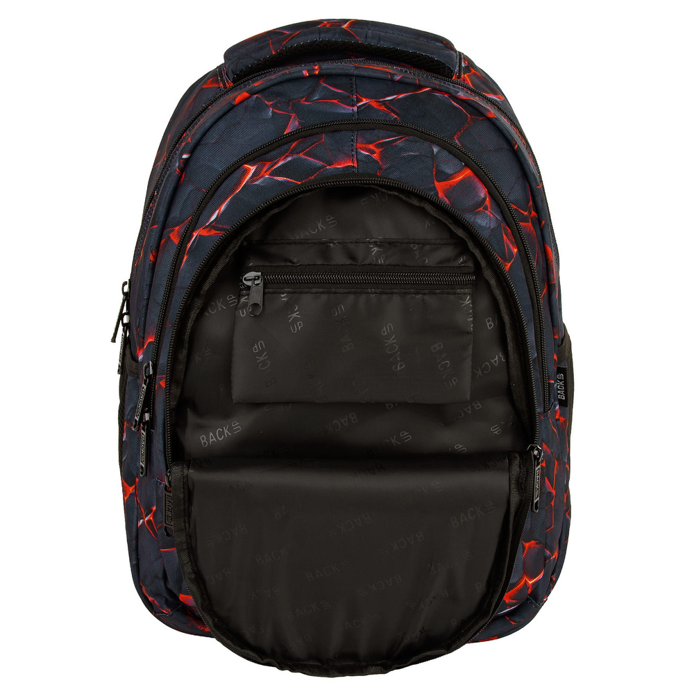 Plecak szkolny BackUP Blaze dla chłopca ogień lawa czarny czerwony O43