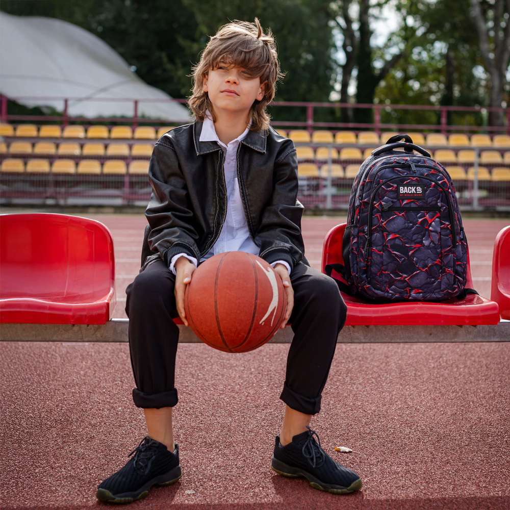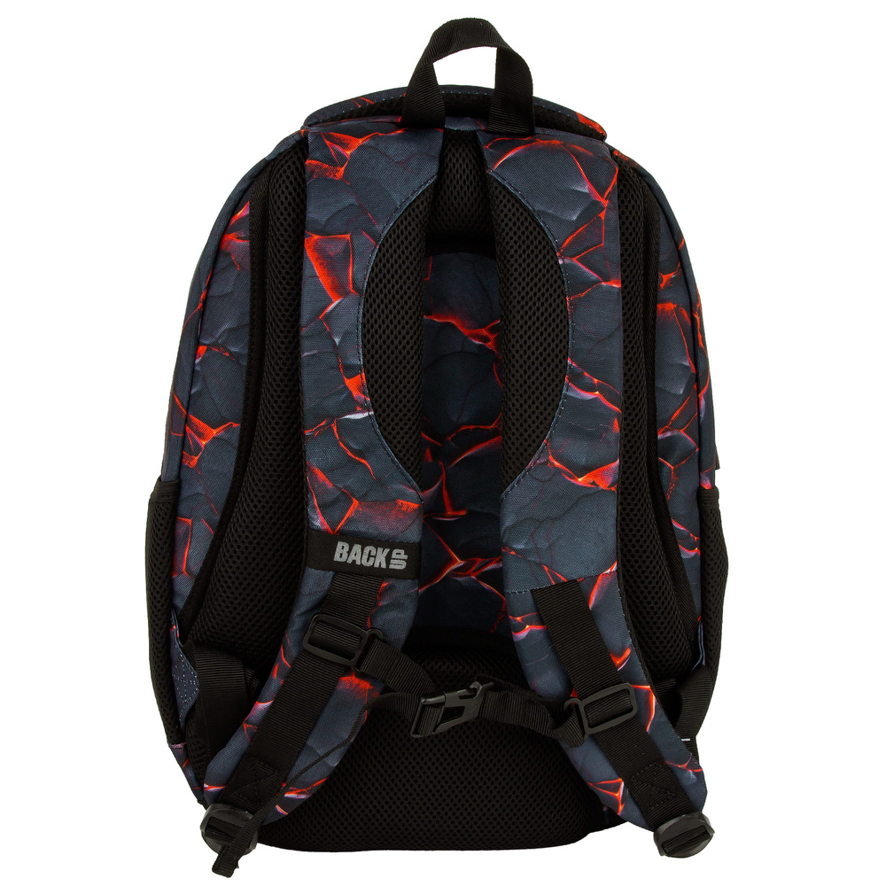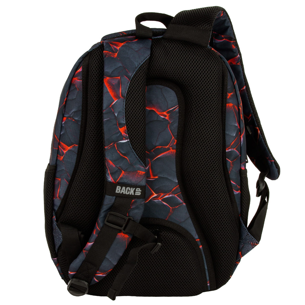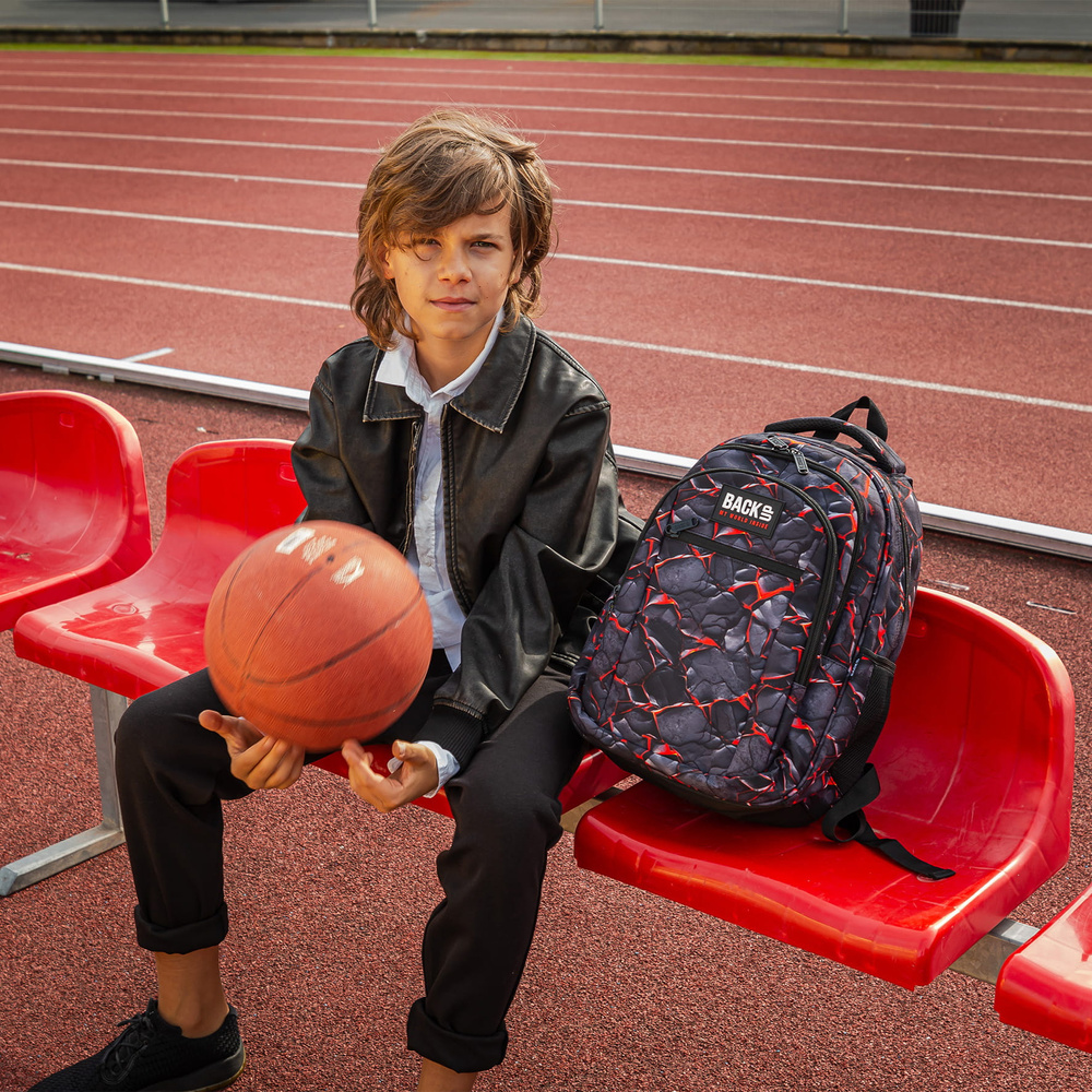 Plecak szkolny BackUP Blaze dla chłopca ogień lawa czarny czerwony O43