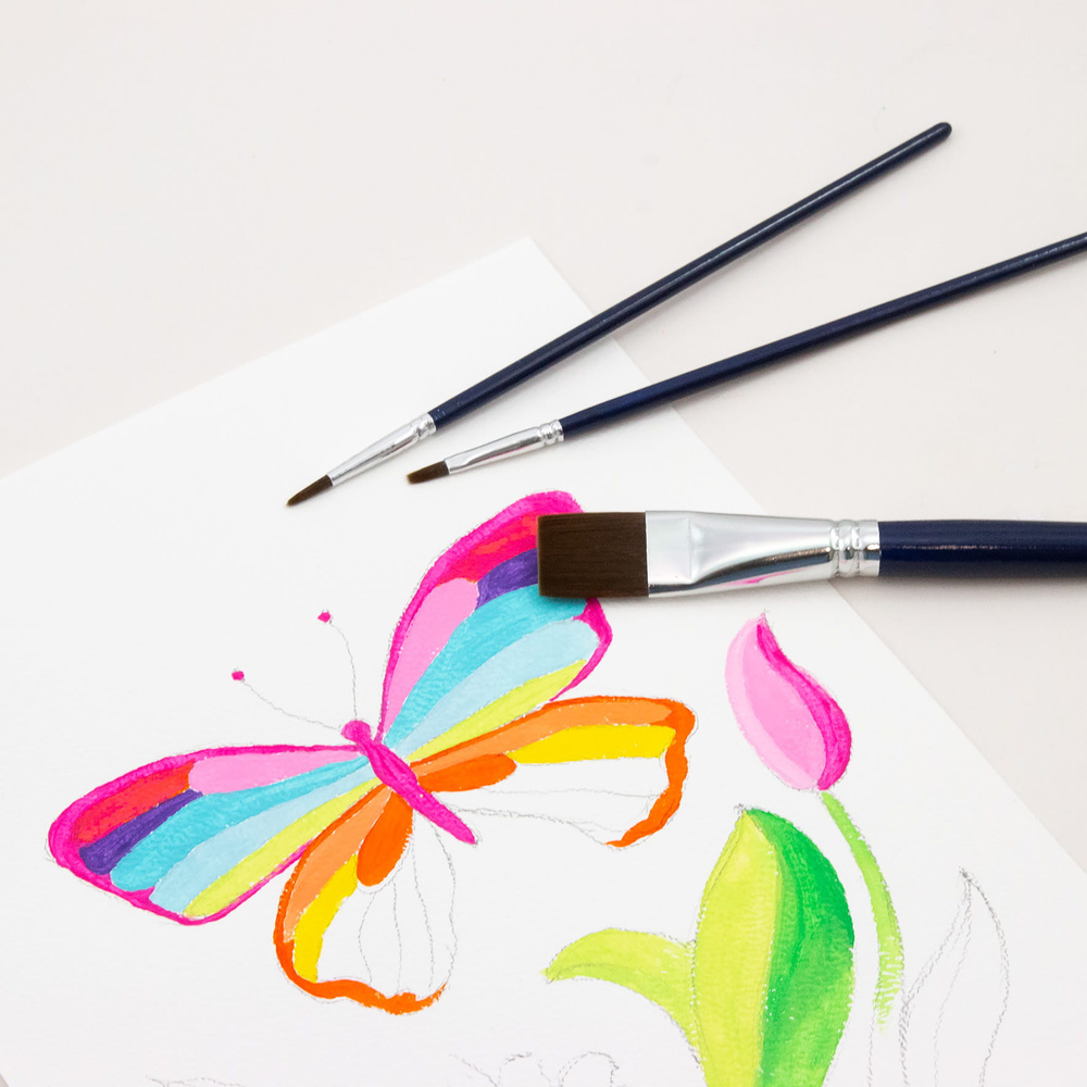 - Pędzel płaski nr 18 – doskonały do wypełniania dużych powierzchni i tworzenia gładkich, równych plam kolorów