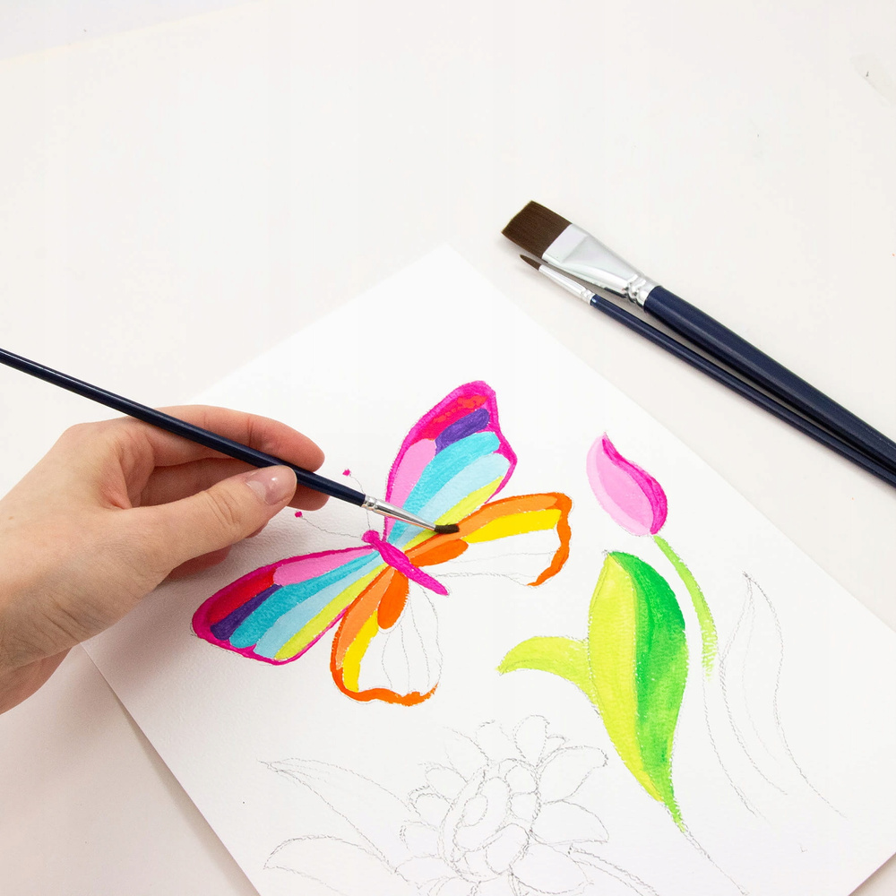 Komplet sprawdzi się świetnie przy różnych rodzajach farb – od delikatnych akwareli, przez gwasze, aż po trwałe i intensywne akryle. Doskonale nadaje się do malowania na papierze, kartonie, płótnie czy drewnie.
