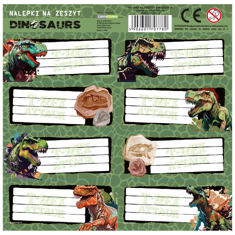 - Naklejki nalepki na zeszyt Dinozaur arkusz z 8 nalepkami Derform