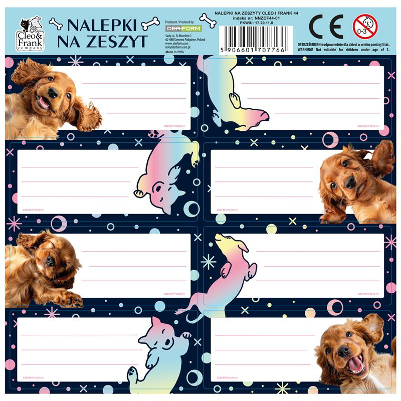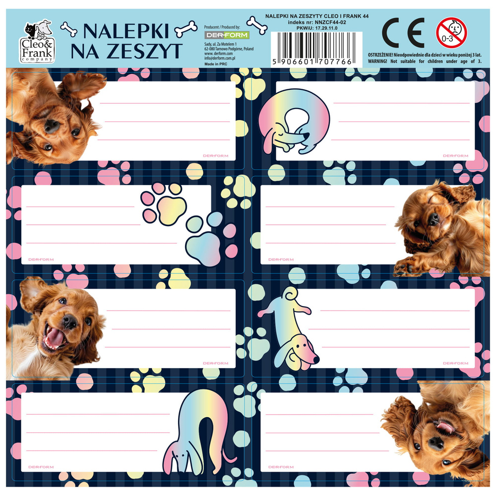 - Naklejki nalepki na zeszyt Cleo i Frank 44 Pies arkusz 8 nalepek Derform