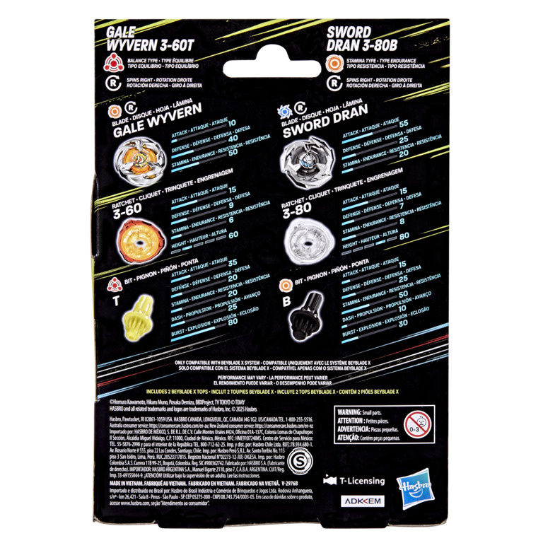 - Beyblade X Gale Wyvern 3-60T i Sword Dran 3-80B Zestaw podwójny Hasbro G1543